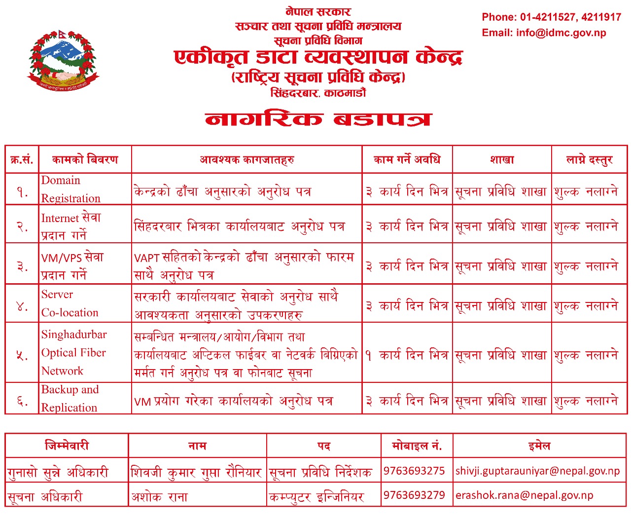 [IDMC/NCB/G/2081-82/009] Supply, Delivery, Installation and Commissioning of Centralized Email System for Government of Nepal का लागि बोलपत्र आव्हान